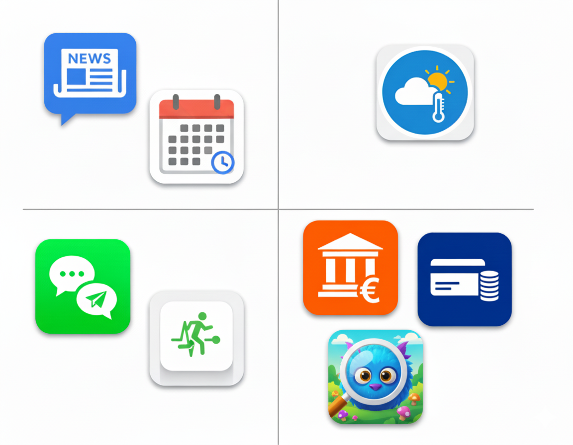 Example sensitive data: name, email Example apps: News (BBC News), Calendar (Google Calendar) |